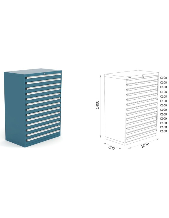 Cuerpo en color gris RAL 7035 (posibilidad de otros colores mediante presupuesto). Puertas a elegir: gris RAL 7035 / azul RAL 5010 / rojo (posibilidad de otros colores...