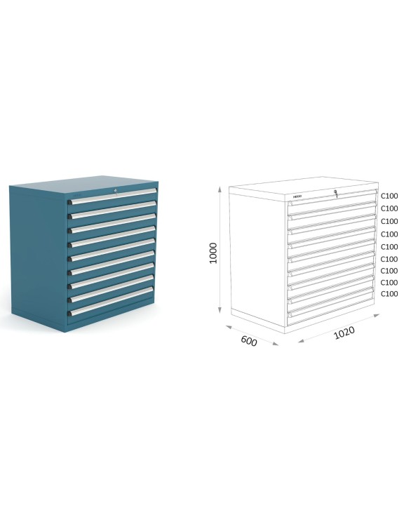 Cuerpo en color gris RAL 7035 (posibilidad de otros colores mediante presupuesto). Puertas a elegir: gris RAL 7035 / azul RAL 5010 / rojo (posibilidad de otros colores mediante...