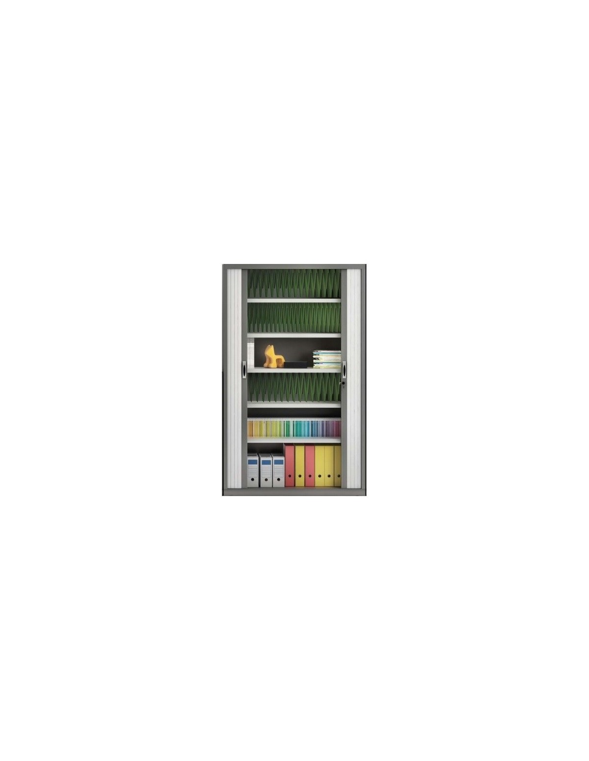 Los estantes incorporan un soporte para carpetas A4 fijas en la tapa.