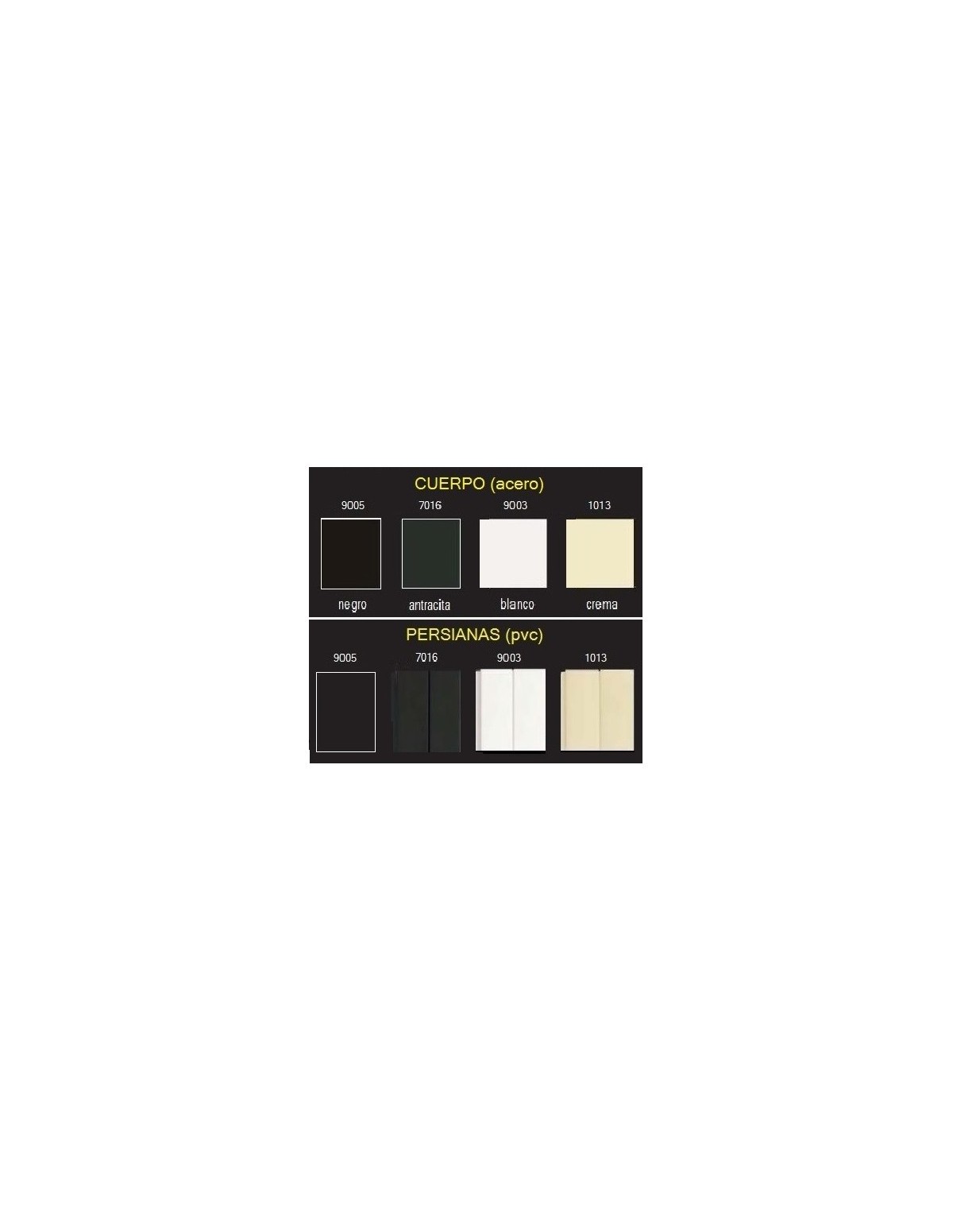 Disponemos de varios colores opcionales para la estructura y las persianas (ver más abajo los acabados)