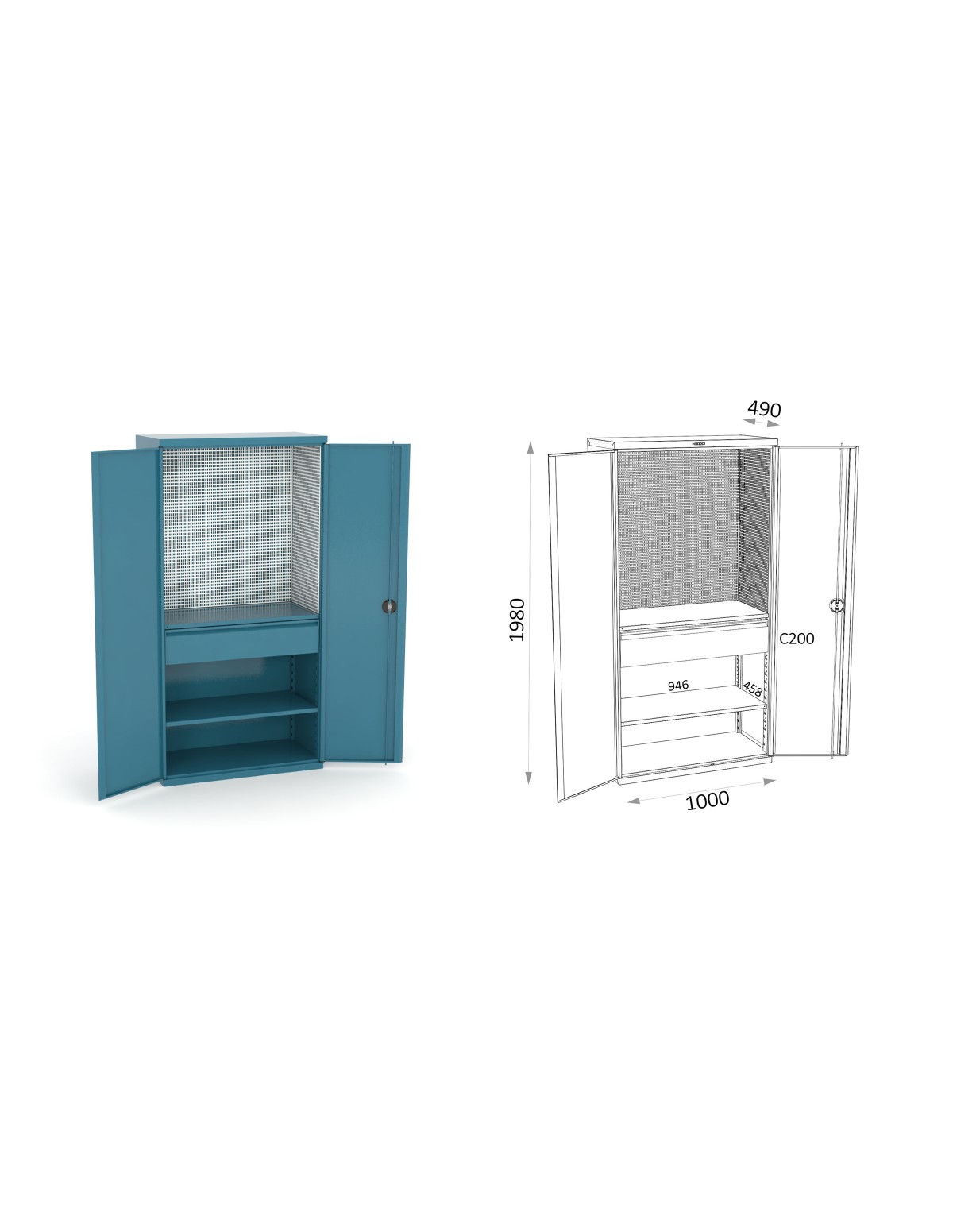 La solución óptima para amueblar su taller, su garaje o su racing esquina. Peso bruto 540 kg.