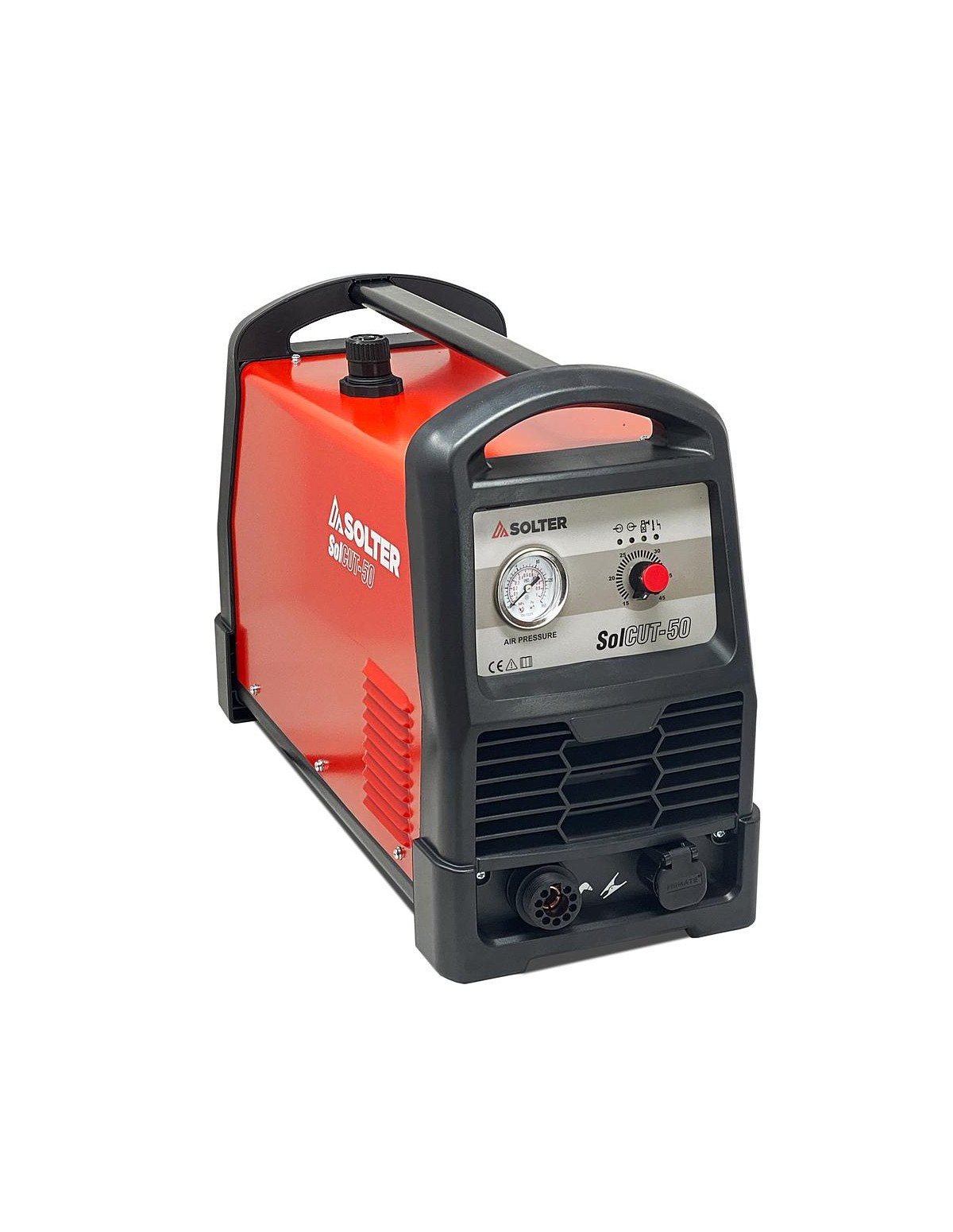 La Solter SOLCUT 50 es una máquina de corte por plasma de alto rendimiento diseñada para profesionales que requieren precisión, eficiencia y durabilidad en sus trabajos. Gracias a su tecnología Inverter, este equipo ofrece una potencia de corte de hasta 45 A, logrando cortes limpios y precisos en acero, aluminio y acero inoxidable. Es capaz de cortar hasta 12 mm en acero y aluminio, y hasta 8 mm en inox, lo que la hace adecuada para tareas tanto ligeras como industriales.