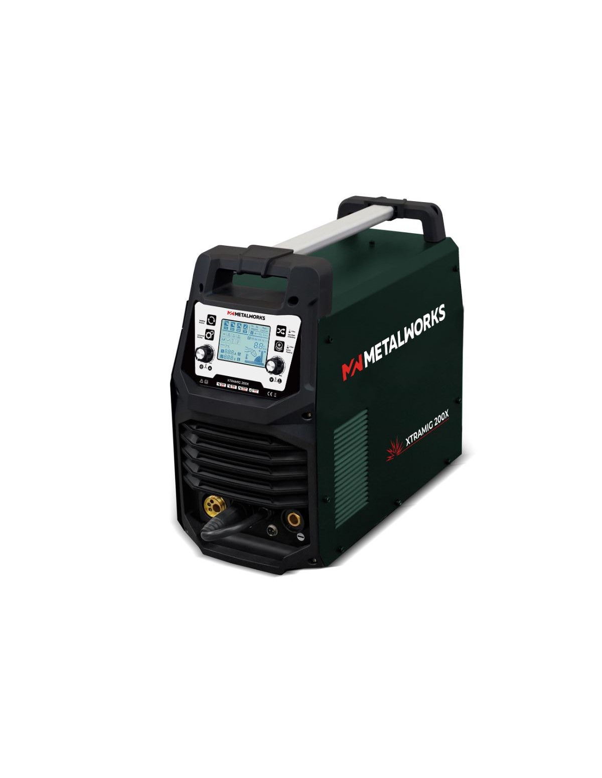 La Soldadora XTRAMIG 200X de Telwin es una unidad inverter multiproceso con control por microprocesador (MCU), diseñada para ofrecer un alto rendimiento en una amplia variedad de aplicaciones de soldadura. Integra tecnología MIG-MAG Synergico, que optimiza automáticamente los parámetros de soldadura, y cuenta con Smart Thermal Control, lo que la hace ideal para trabajos sobre chapas delgadas. Esta versátil soldadora permite soldar con hilo macizo o flux, y admite los procesos TIG Lift y MMA, con funciones avanzadas como Anti Stick, VRD, Arc Force y Hot Start, que facilitan el arranque y evitan pegado del electrodo.