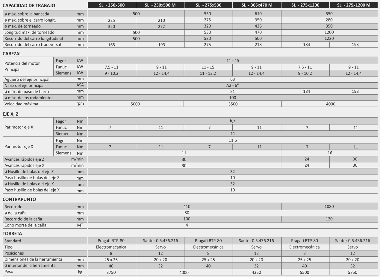 Avances longitudinales: 0,031 - 1,7 mm/rev.